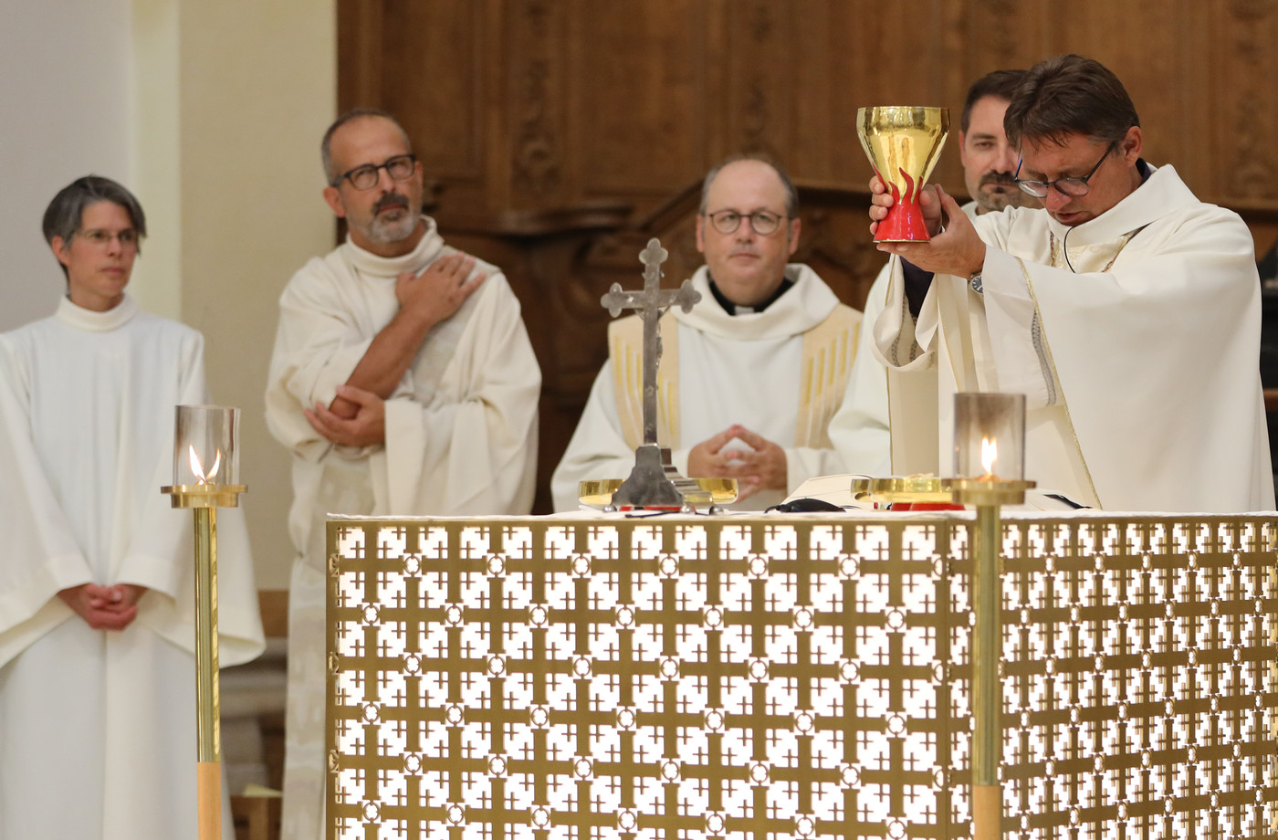 La théologienne Marie-Andrée Beurret et le diacre Didier Berret ont été installés comme délégués épiscopaux de l’évêque de Bâle, Mgr Félix Gmür, pour le Jura pastoral, le 1er septembre 2022, lors d’une célébration eucharistique à l’église Saint-Marcel de Delémont (JU).