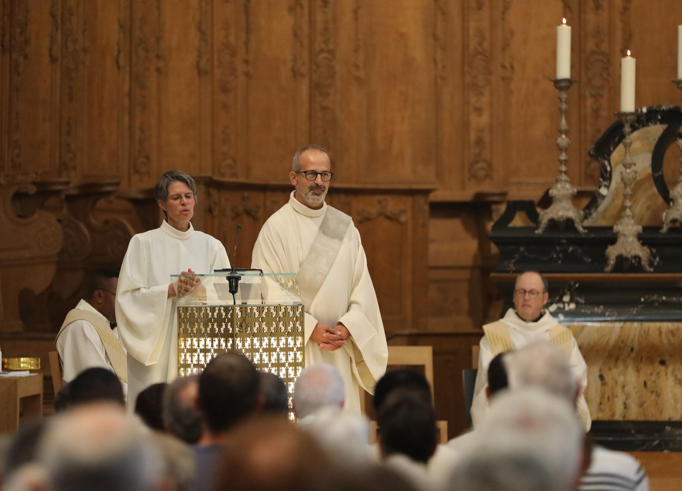 «Notre voeux c’est que toutes vos voix viennent compléter les nôtres» a lancé Marie-Andrée Beurret aux 400 personnes venues entourer ses leurs nouveaux nouveaux délégués épiscopaux. «Nous désirons faire Église ensemble», a pour sa part indiqué le diacre Didier Berret, tous deux installés pour la partie francophone du diocèse de Bâle.