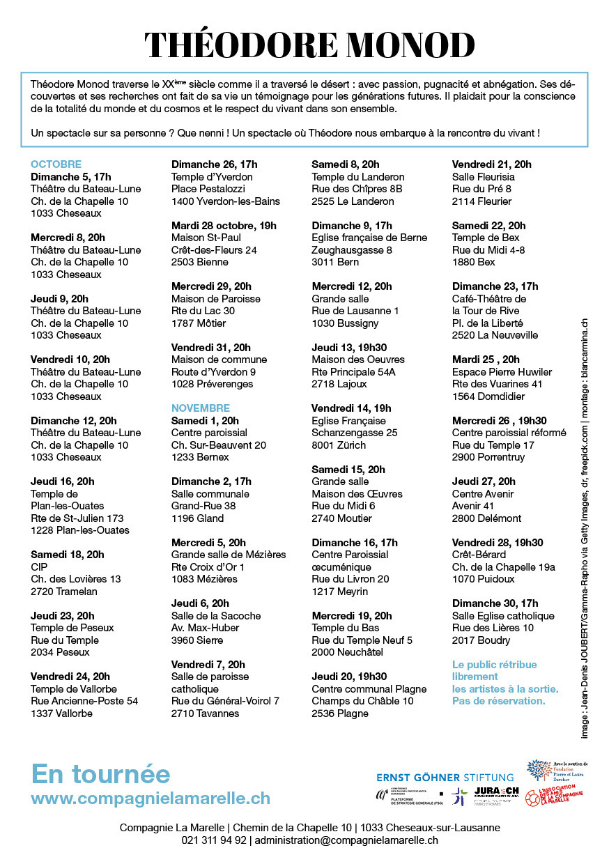 Sur les pas de Théodore Monod avec le Théâtre de la Marelle